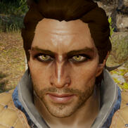 his mother told him he came from the womb gray-haired as an old man, and howling at the world like a feral wolf. his nickname from that story stuck fast, and it’s the name he chose for himself when he finally realized he was a boy and was uncomfortable with the one his mother gave him at birth. he trained as a spy and assassin with clan lavellan, and was sent to invisibly observe the goings-on at the conclave. he tends to be reserved and secretive, only trusting few—but eventully, solas wins his heart, and dorian, cole, and leliana win his close friendship. when solas leaves him, he nurses that broken heart and leaves for tevinter to support dorian on his quest for reform. when it comes down to it though, fen’dorf supports solas as much as he wants to fight him, because they’re far too similar; he would also watch the world burn to save those he loves, which means he’d do it for solas, just as easily.